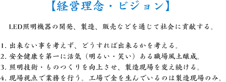 当社はライティングを通じて世界に貢献・奉仕し、すべての人々の縁と恩に報いる会社でございます。 私たちを取り巻く環境は、想像以上のスピードで変化しています。これからも、強い開発力・技術力でSDGs・カーボンニュートラルの領域と新たな領域にもチャレンジしていく「ハッコウソニック」に、どうぞご期待ください。